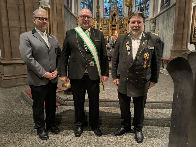 Im Rahmen eines Gottesdienstes in der Kirche des Klarissenklosters Maria Lind in Waldfeucht-Braunsrath überreichten Bundesschützenmeister Robert Hoppe und Diözesanbundesmeister Kurt Bongard im Januar 16 Anno-Santo-Kreuze an Bruderschaften aus dem Diözesanverband Aachen. Mitglieder dieser Vereine hatten im Heiligen Jahr 2025 als „Pilger der Hoffnung“ den Weg nach Rom gefunden.
